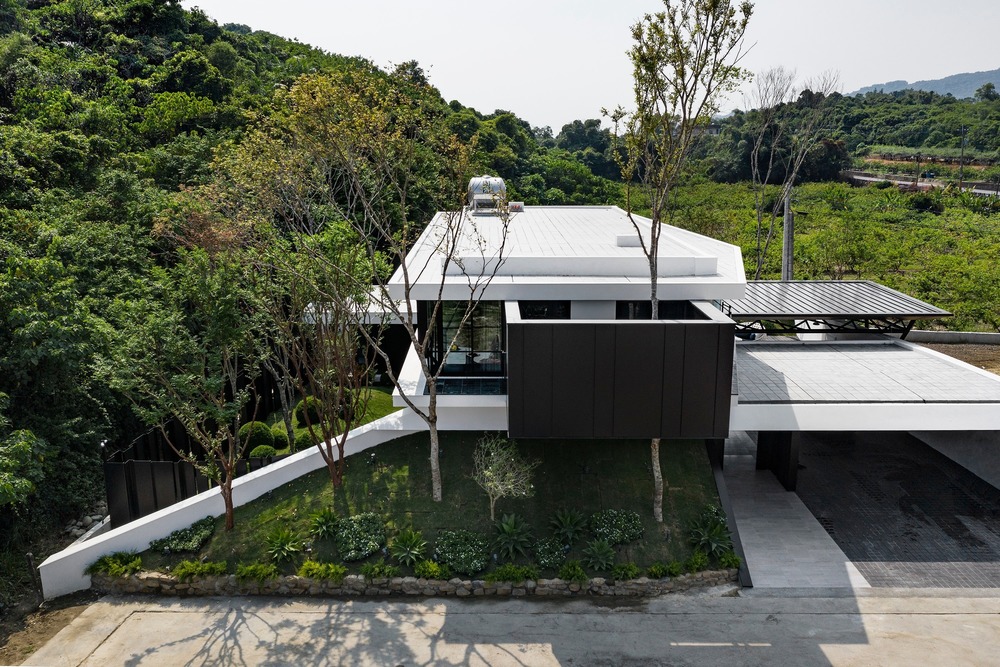Chain10 Architecture and Interior Design studio, led by architect Keng-Fu Lo, has designed a countryside house close to the low-density residential area of the Agongdian Reservoir in the mountains of Kaohsiung. At first glance, it looks like an orchard with lots of hills, but upon closer inspection, one will notice that there is a private 6-meter driveway that conceals the house from the main road.