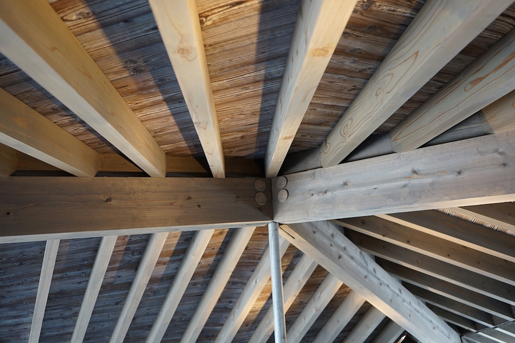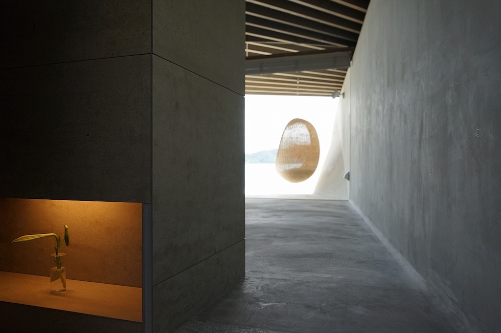 The 1,986m² development is composed of bold origami-like concrete structures topped by wooden roofs, inspired by the traditional Amamian architecture. The floor-to-ceiling windows frame the views outside and connect the interior with the exterior, creating a sense of oneness with nature.