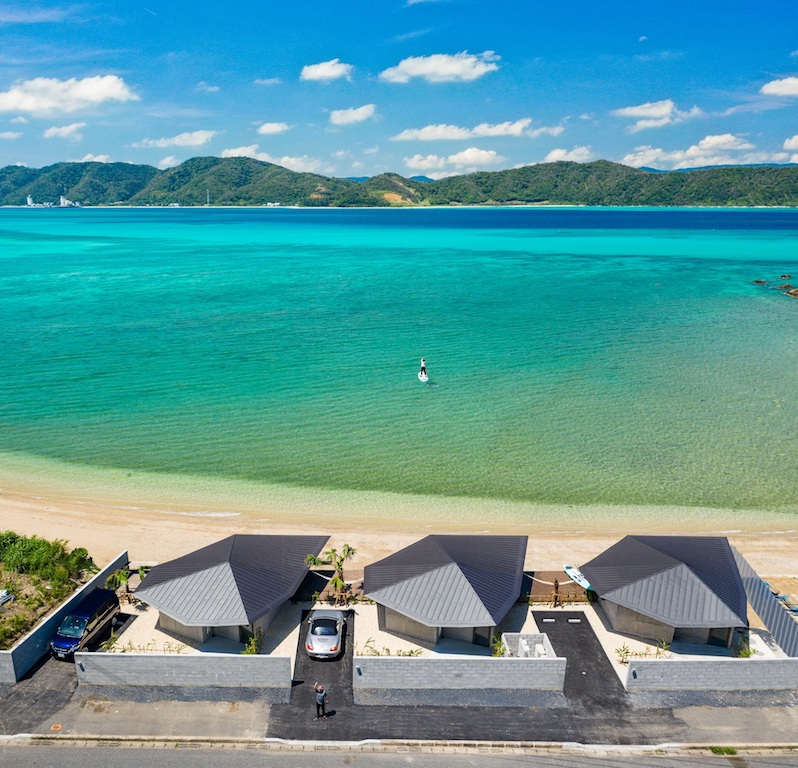 Japanese practice Atelier Tekuto has collaborated on a collection of seafront villas along a beach in Amami Oshima, part of the Kagoshima prefecture on Kyushu in Japan’s southwestern end. DenPaku Tamamihe Beachfront MIJORA villas are owned and designed by architect Yasuhiro Yamashita, with each villa offering a panoramic view of the sea.