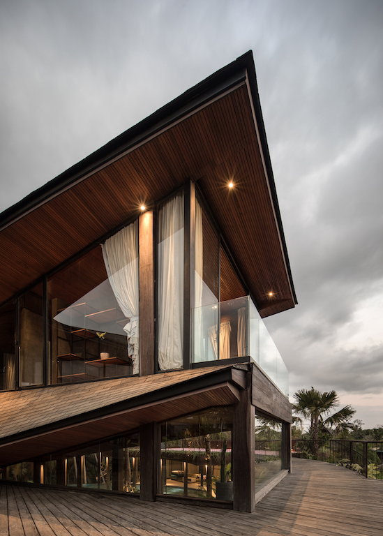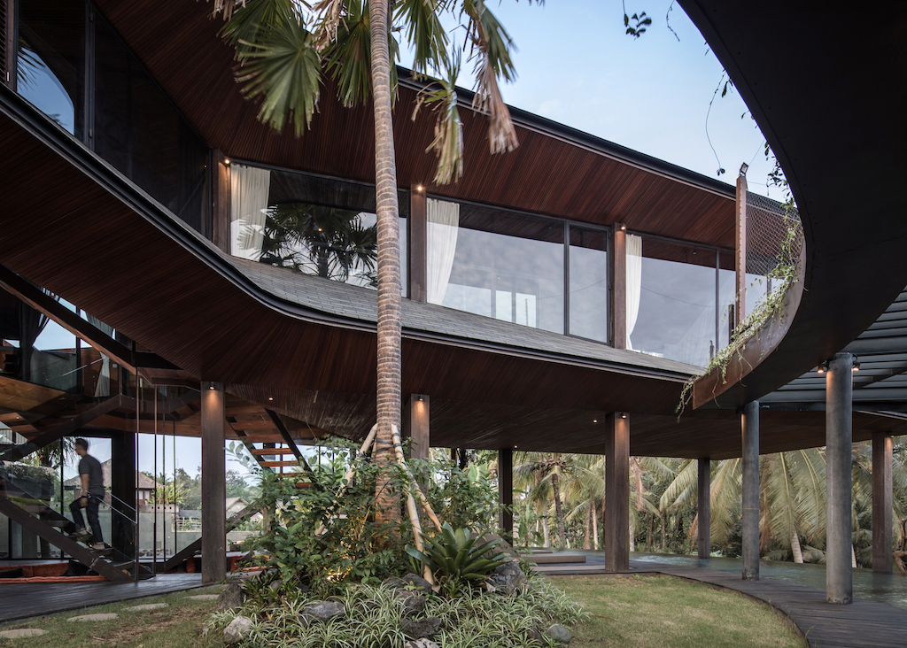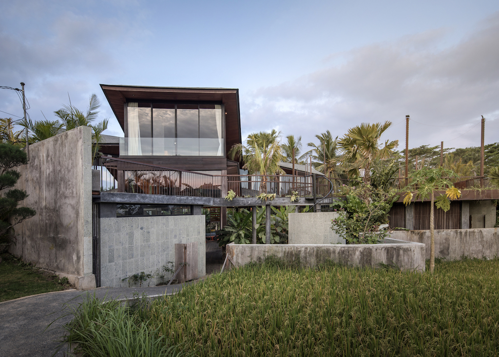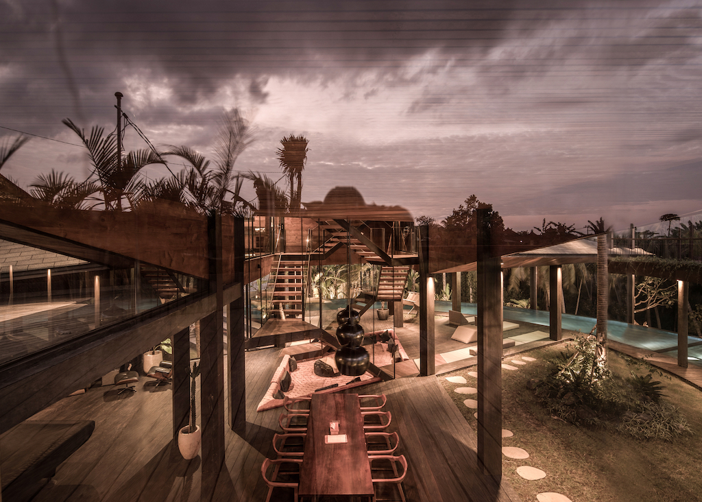 Bali-based architect Alexis Dornier has designed a four-bedroom house on stilts in the shape of a cross surrounded by a circle, located in the artsy Ubud area. The cross is the primary building component in the 420m² house, whereas the circle is the secondary element.