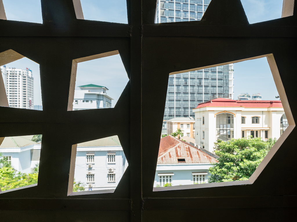 The site, in a particularly compact area of Hoàn Kiếm in northern Hanoi, is composed of two lots; an existing seven-storey tube house and a low-rise steel structure. The project draws its design references from traditional shophouse typologies that provided natural ventilation and lighting across a horizontal organisation, their density broken up by intermittently distributed open plazas.