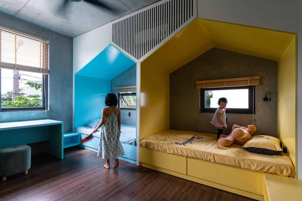 The ground floor is designed to maximise connectivity to all functional spaces inside and outside the house, where the children can run around and play freely.