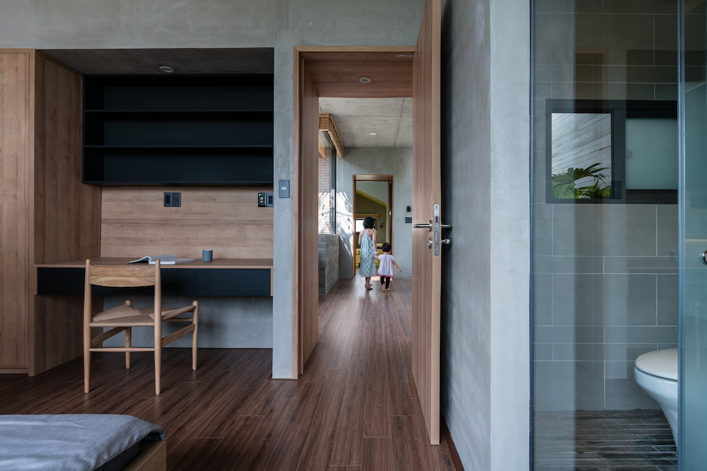 The brick wall is made into two layers separated by an air cavity not only to insulate the heat but also for acoustic purposes – to soundproof – creating the quietest space for the homeowners. All rooms take full advantage of natural daylight and fresh air. Lighting is also intentionally arranged to maximise the lighting effect and evoke emotions when elevating the feel of the materials’ surface and space’s contrasts. The house is designed to be energy-efficient and minimise power consumption.