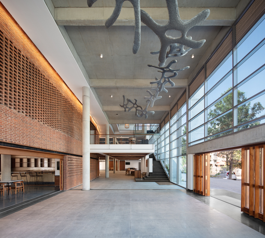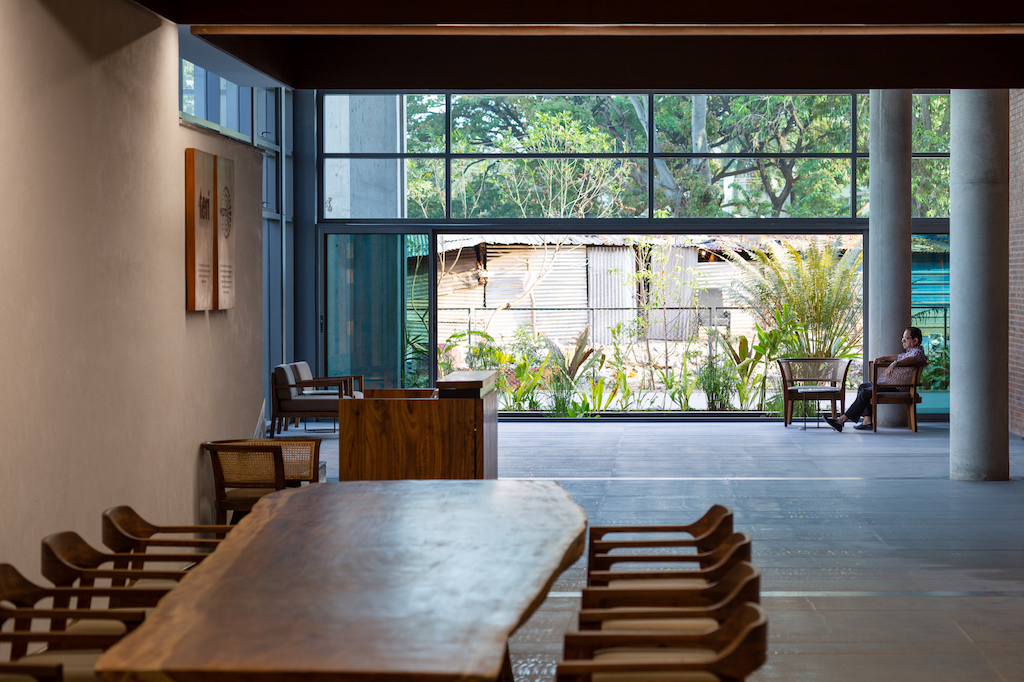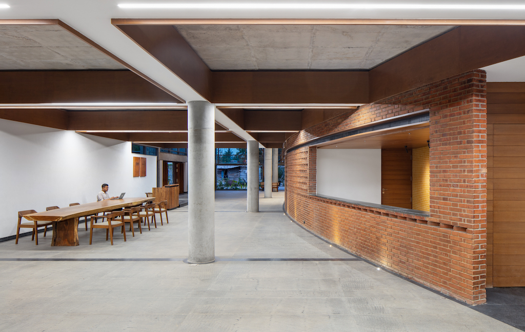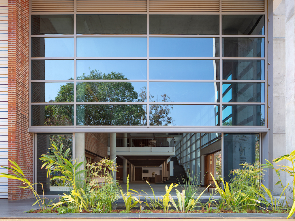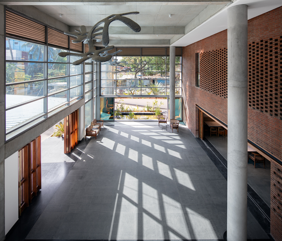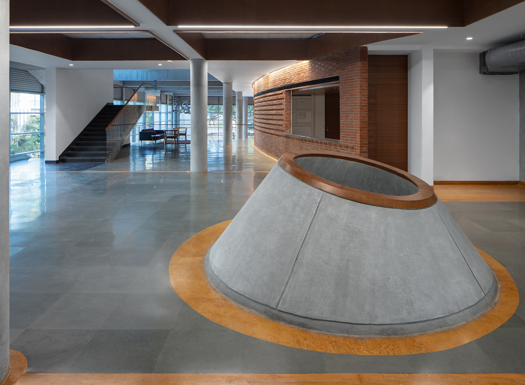 Following an open competition win, Bengaluru-based multidisciplinary studio Hundredhands, founded by Sunitha Kondur and Bijoy Ramachandran, was commissioned to design the Bangalore International Centre (BIC) – a neutral, non-profit, member and donor-supported public institution founded to enhance dialogue and foster ideas across cultures, religions, regions, societies, and economies. It organises free events that are open to general public and that expose decision-makers and citizens to diverse fields and points of view.