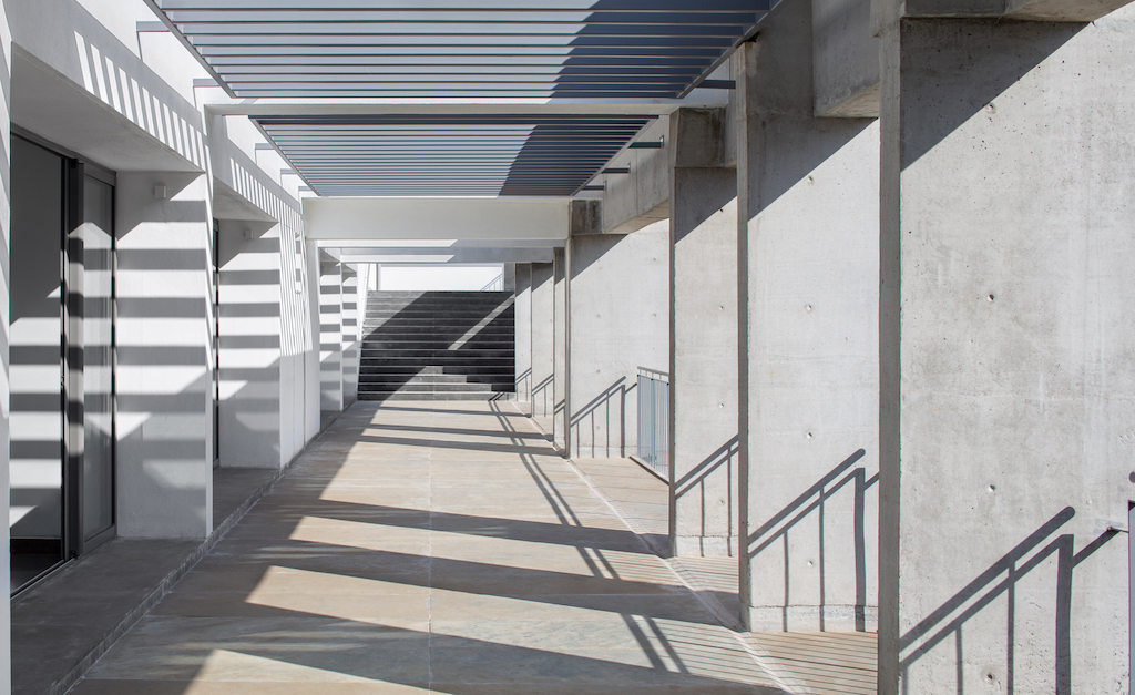 The design scheme was based on four principals: The public function of the building was to be found in the architectural expression; by breaking up the building with a void along the second floor the scale of the surrounding fabric was sensitively addressed; the various programme components were distinct in terms of massing and easily discernible in terms of circulation through the building; landscape strategies were used to mitigate the odours from the nearby storm-water drain; the location of the site beside a municipal park, army land and adjoining the city’s storm-water channel determined the design of the landscape.