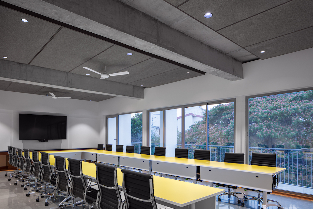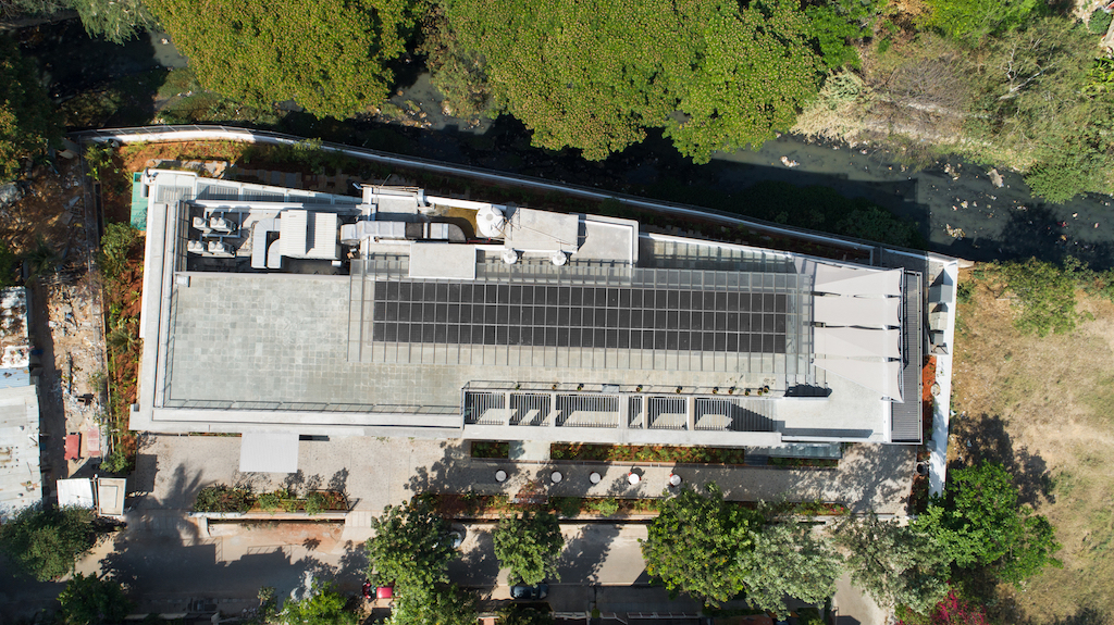 Due to the high programmatic built requirements and associated services, the amount of open space available was limited. The landscape looked beyond the site and aesthetics, to function as a public amenity as well as to contribute towards environmental remediation. The building has been submitted for a GRIHA (India’s sustainable building certification) 5-Star certification. As part of this in the preparation of the site, safety standards during construction, storage of materials, construction methodologies and material specifications, GRIHA norms and recommendations were followed.