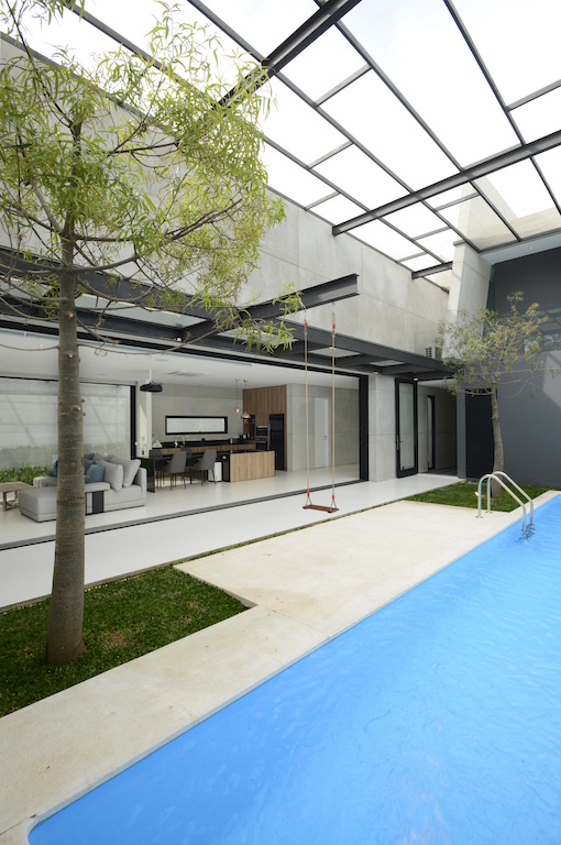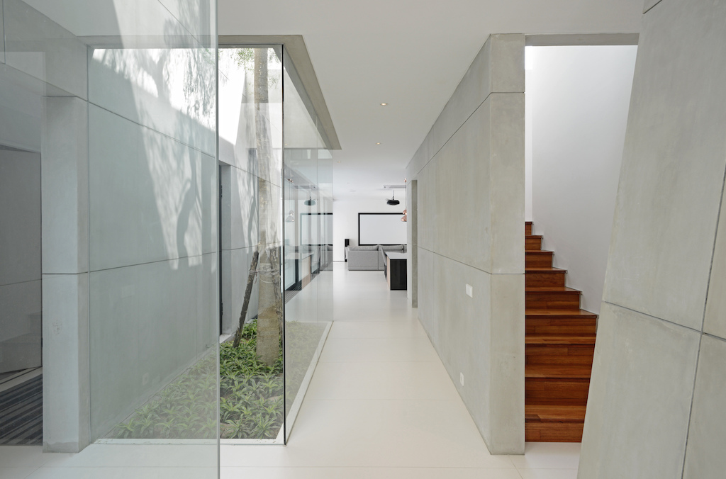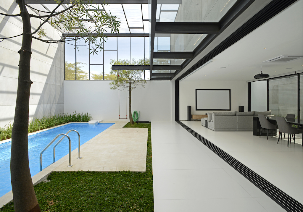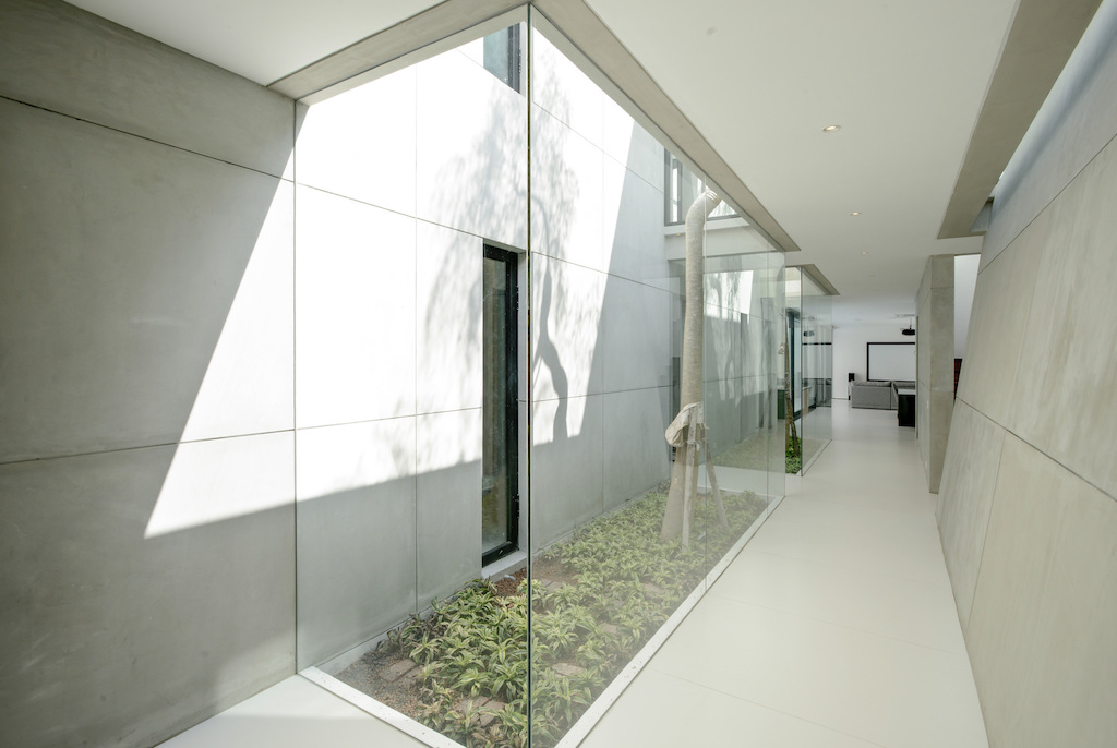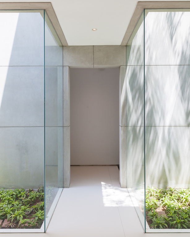 Internal gardens puncture the house in multiple places creating porosity in the indoor environment. These outdoor pockets provide natural light to the interiors of the house. The porosity of the house blurs the boundary between the indoor and outdoor spaces. The interior space opens and connects to the outdoors as much as the outdoor areas feel as secured and protected as the indoors.