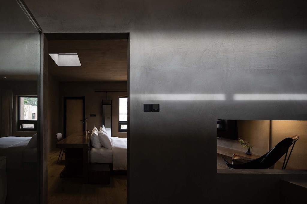 “We used a special treatment of cement mortar on the exterior walls to restore the texture of rammed earth wall from local buildings, so the architecture will look beautifully “old” after being exposed to winds and rains after a while,” say the architects.