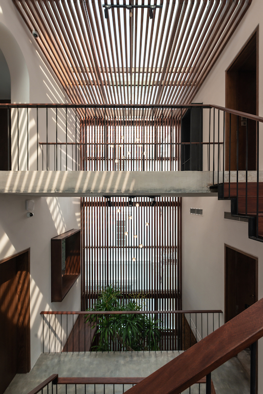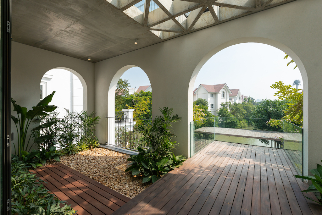 The team, led by architects Liz Nguyen and Nghiem Phong, created a porch, expanding the rear area and placing a void in the centre of the villa. They placed the common areas on the first floor, the bedrooms on the second and third floors, which have been widened with views of the garden and the river. The porch and void don’t just create blank spaces but also adapt to the tropical conditions.