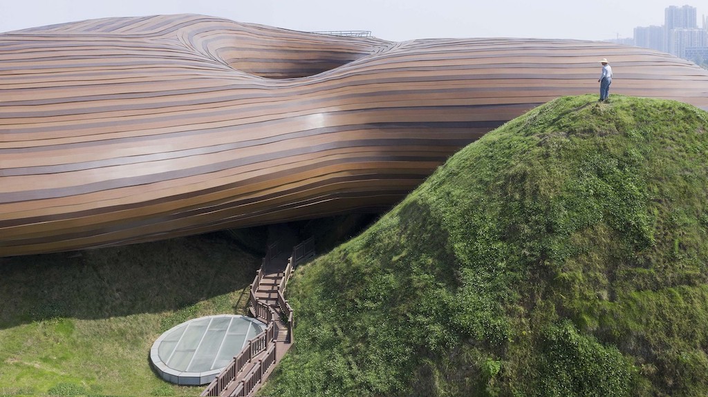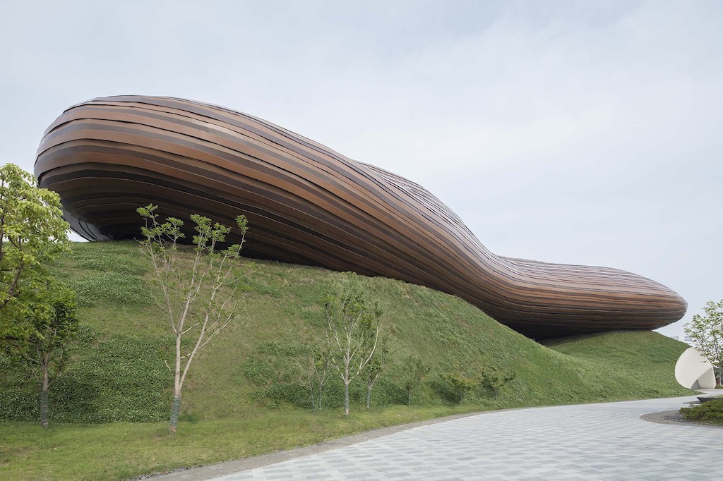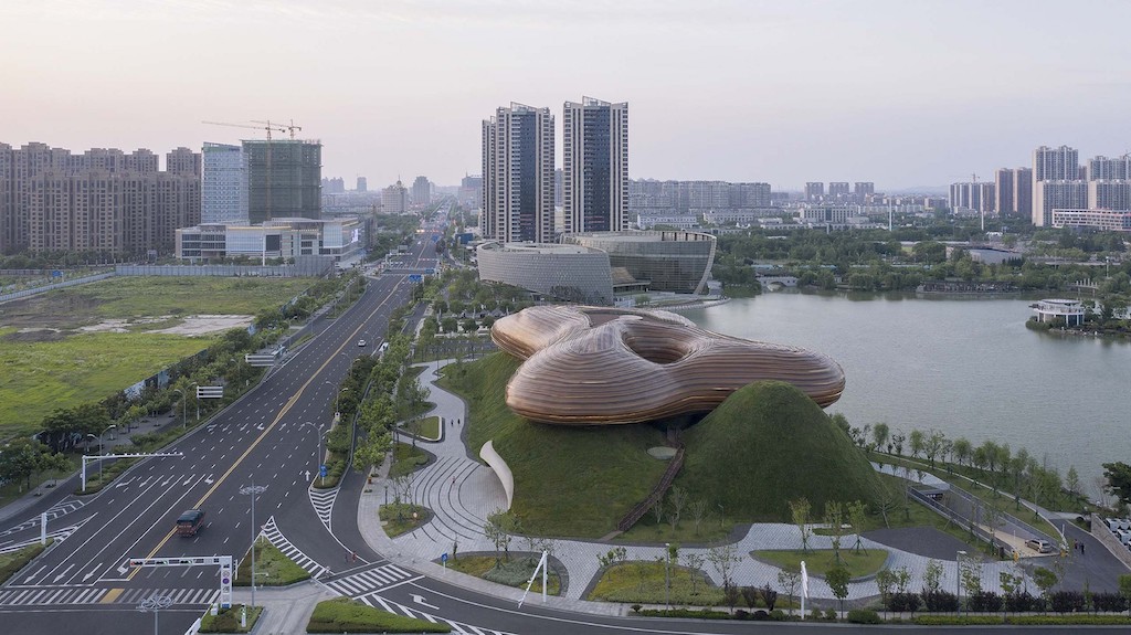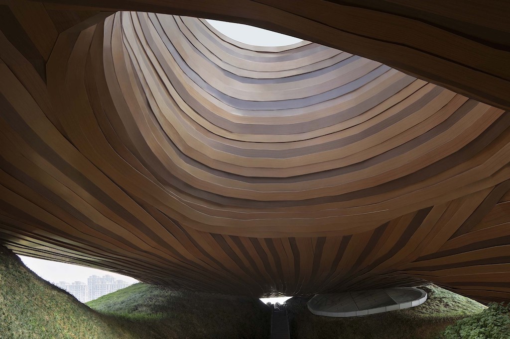 Taiwanese firm Crox, led by architect C.R. Lin has designed the Liyang Museum in Changzhou in the Jiangsu province in China. Located in the southeast corner of Yan Lake Park in the new urban district, the 19,000m2 museum connects an urban public space to the new nature. Its organic contours sitting atop undulating mountains are inspired by the Chinese musical instrument and its legend. Jiaoweiqin, one of the local cultural symbols. Lin created the concept based on this premise.